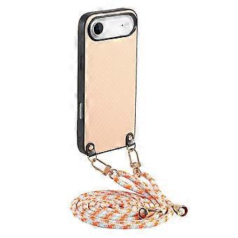 Für Apple iPhone 17 Air Carbon Design Leder Hülle Umhängeband Beige