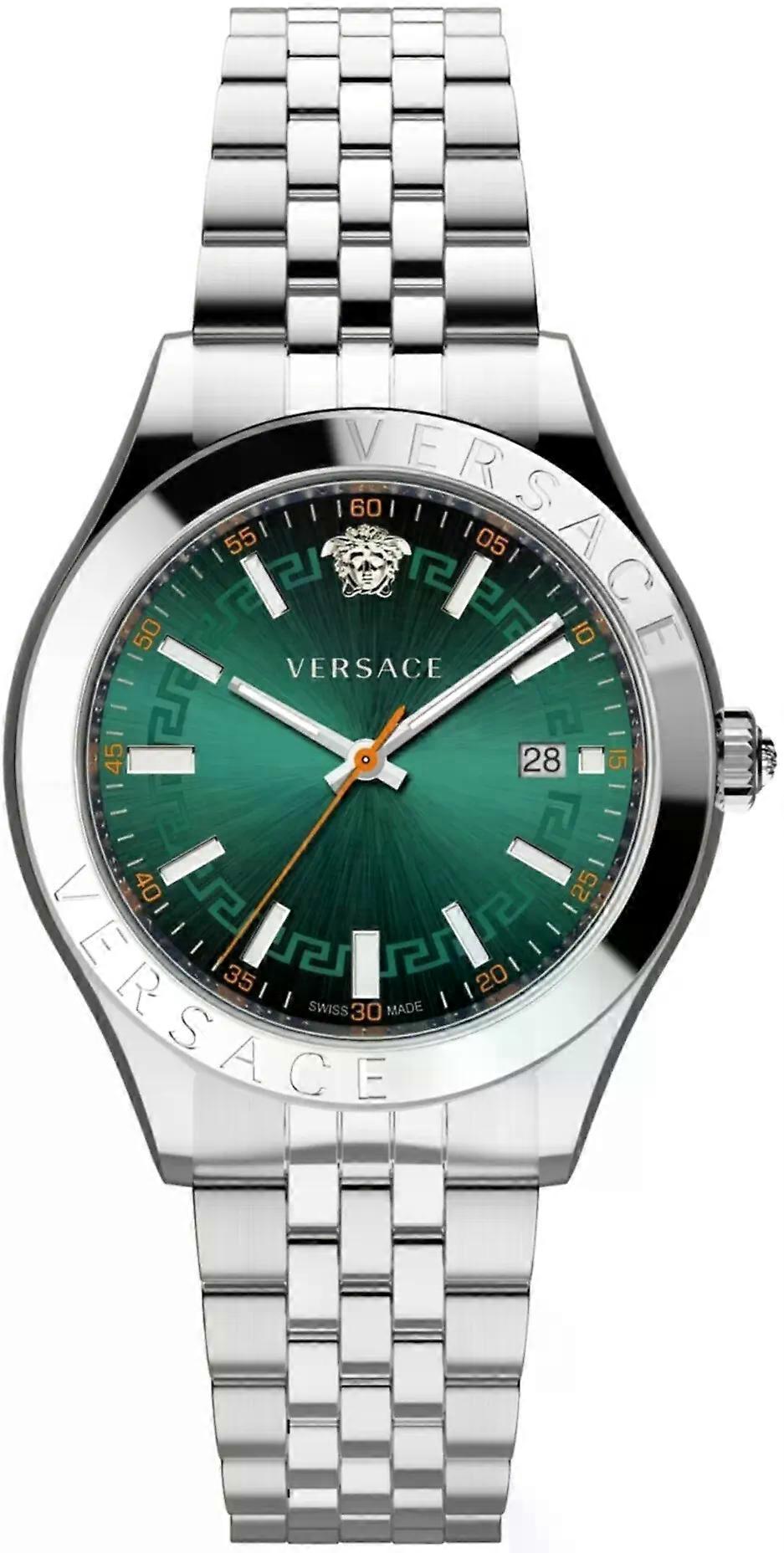 Dit horloge wordt geleverd met Versace echtheidskaart en CLG-verificatiecode. Versace VEVK01021 Hellenyium: zilver met diepe groene glans De Versace VEVK01021 Hellenyium is een stijlvolle keuze voor heren die klasse en betrouwbaarheid zoeken. Dit horloge heeft een opvallend glanzende lunette en kast met mat geborstelde elementen. De groene wijzerplaat geeft diepte en luxe, omlijst door een zilverkleurige RVS kast van 42 mm en een solide stalen band. Alle Versace horloges zijn bij WatchXL in de aanbieding en volledig authentiek geleverd. * Saffierglas is zeer krasbestendig en houdt het zicht langdurig helder * Quartz uurwerk met batterij voor nauwkeurige tijd, elke dag * Datumweergave zodat je in één oogopslag je planning checkt * 5 ATM praktisch voor regen of een snelle douche * Lichtgevende wijzers en indexen voor goede afleesbaarheid in het donker Design dat vertrouwen uitstraalt De glanzende bezel geeft het model een luxe rand, terwijl de groene