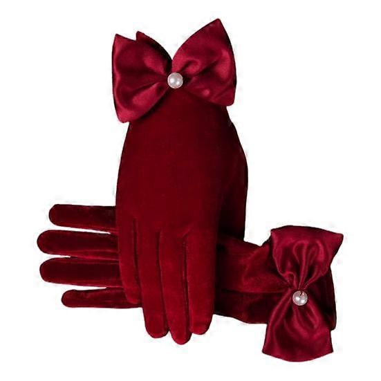1 Pair Women Fall Winter Gloves Velvet Five Fingers Solid Color Gloves Bow Decor Thick Non-Slip Warm Windproof Prom Wedding Party Jewelry Shop
