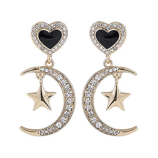 1 Pair Moon Star Heart Shape Drop Earrings Shining Rhinestone Inlaid Dangle Earrings Women Stud Earrings Jewelry Gift