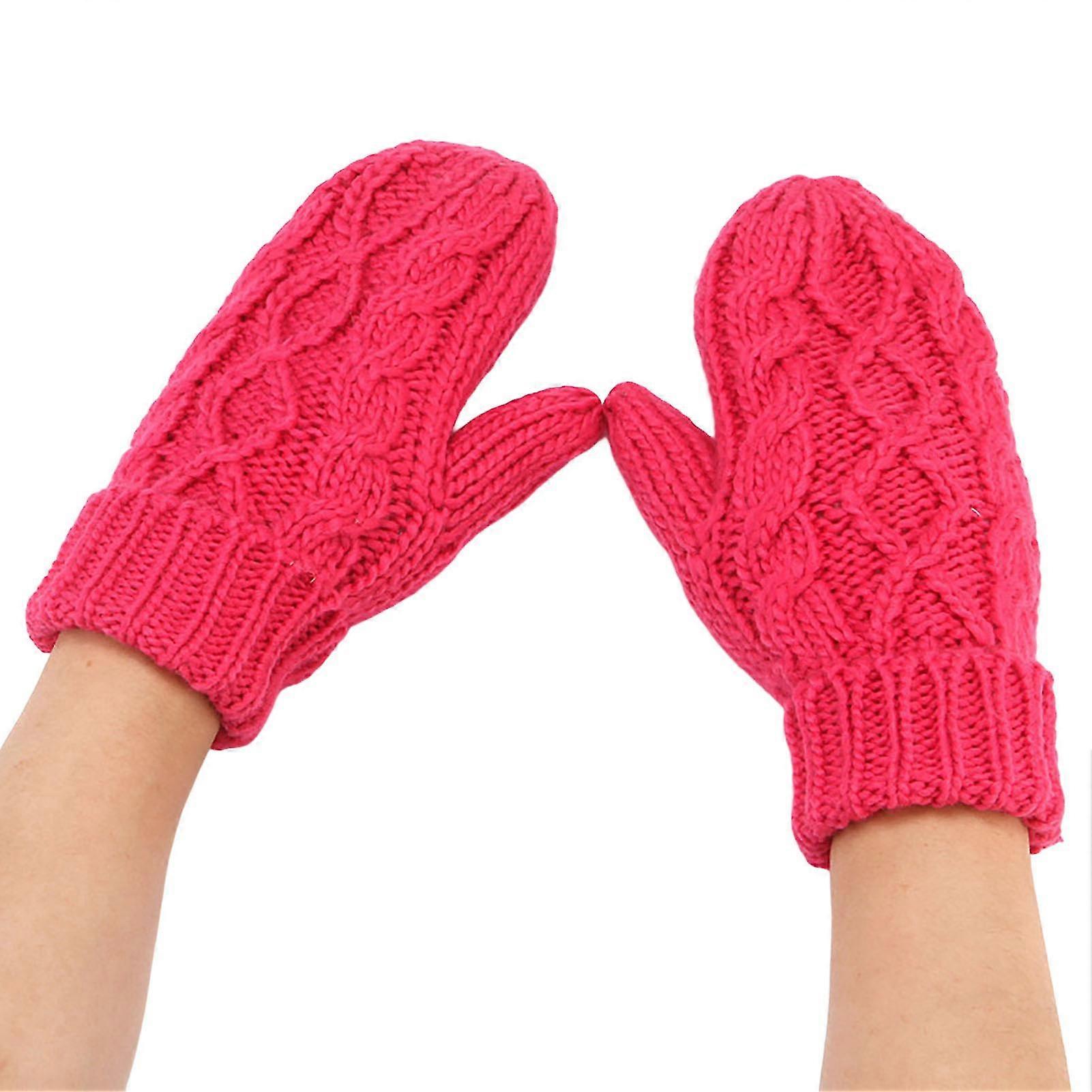 1 Pair Knitted Gloves Thicken Full Fingers Windproof High Elasticity Comfortable Keep Warm Solid Color Men Women Winter Plus Fleece Mittens For /YY