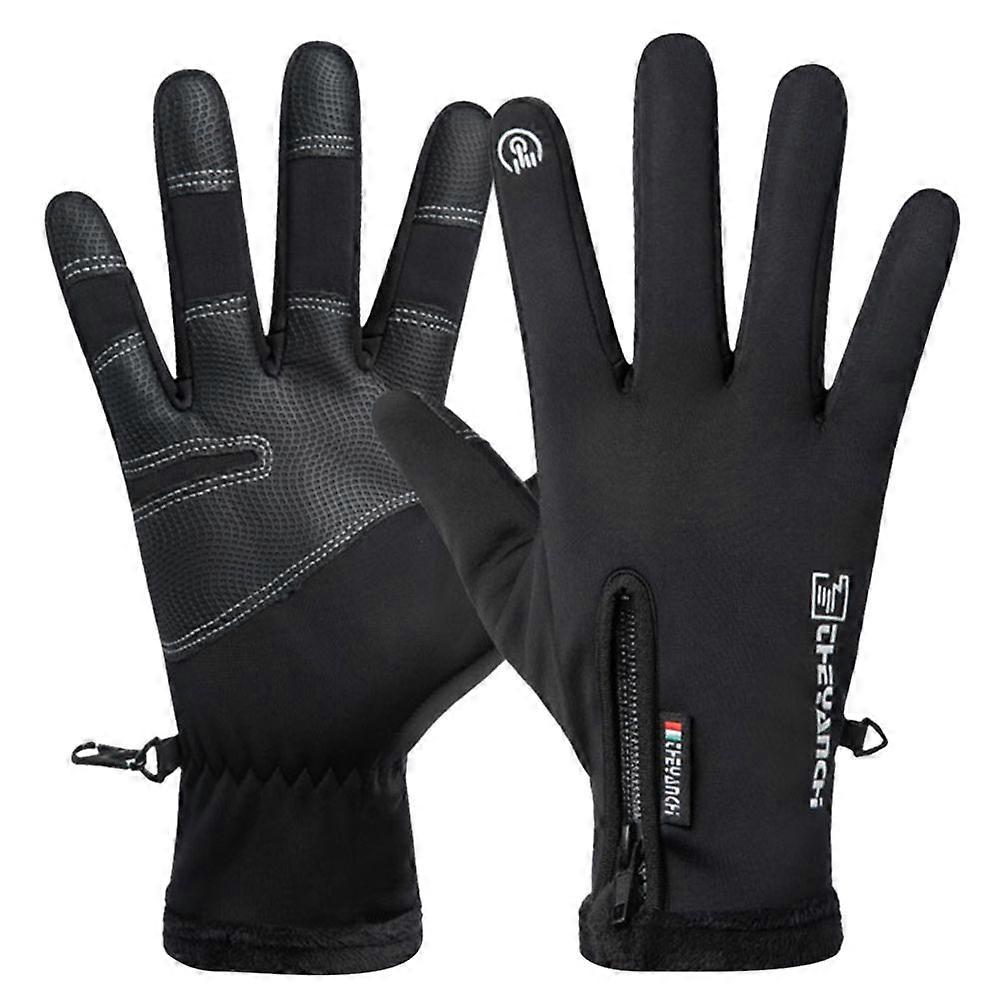 1 Pair Winter Riding Gloves Warm Windproof Waterproof Bike Gloves Touch Screen Gloves Mountaineering Gloves for Men (Black, M)
