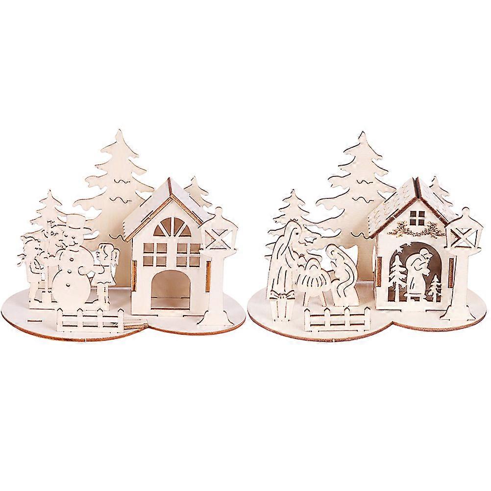 1 Set 2 Pcs Christmas Wooden DIY Adornments Crafts (Wooden Lubricious)