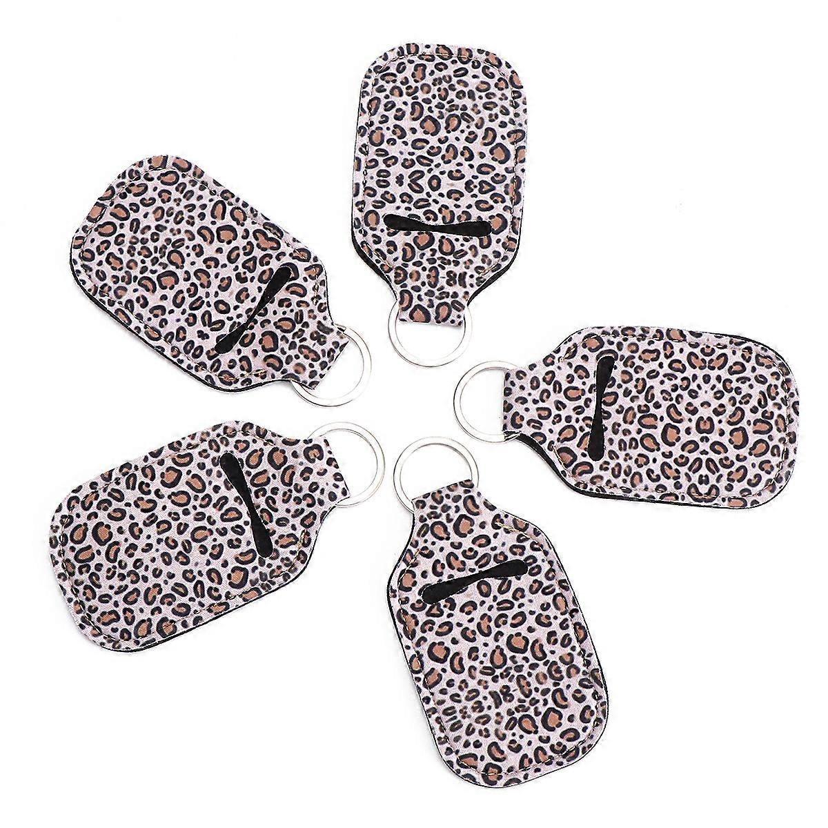 1 Set 5pcs 30ml Alcohol Bottle Cover Lip Balm Holder Neoprene Hand Sanitizer Bottle Cover withKey Chain Carries (Leopard)