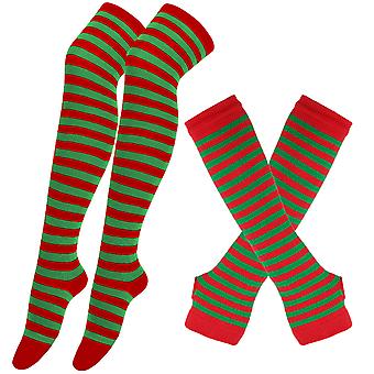 1 Set Winter Socks Gloves Set Thick Slimming Striped Fingerless Soft Keep Warm Christmas Socks Gloves Set for School