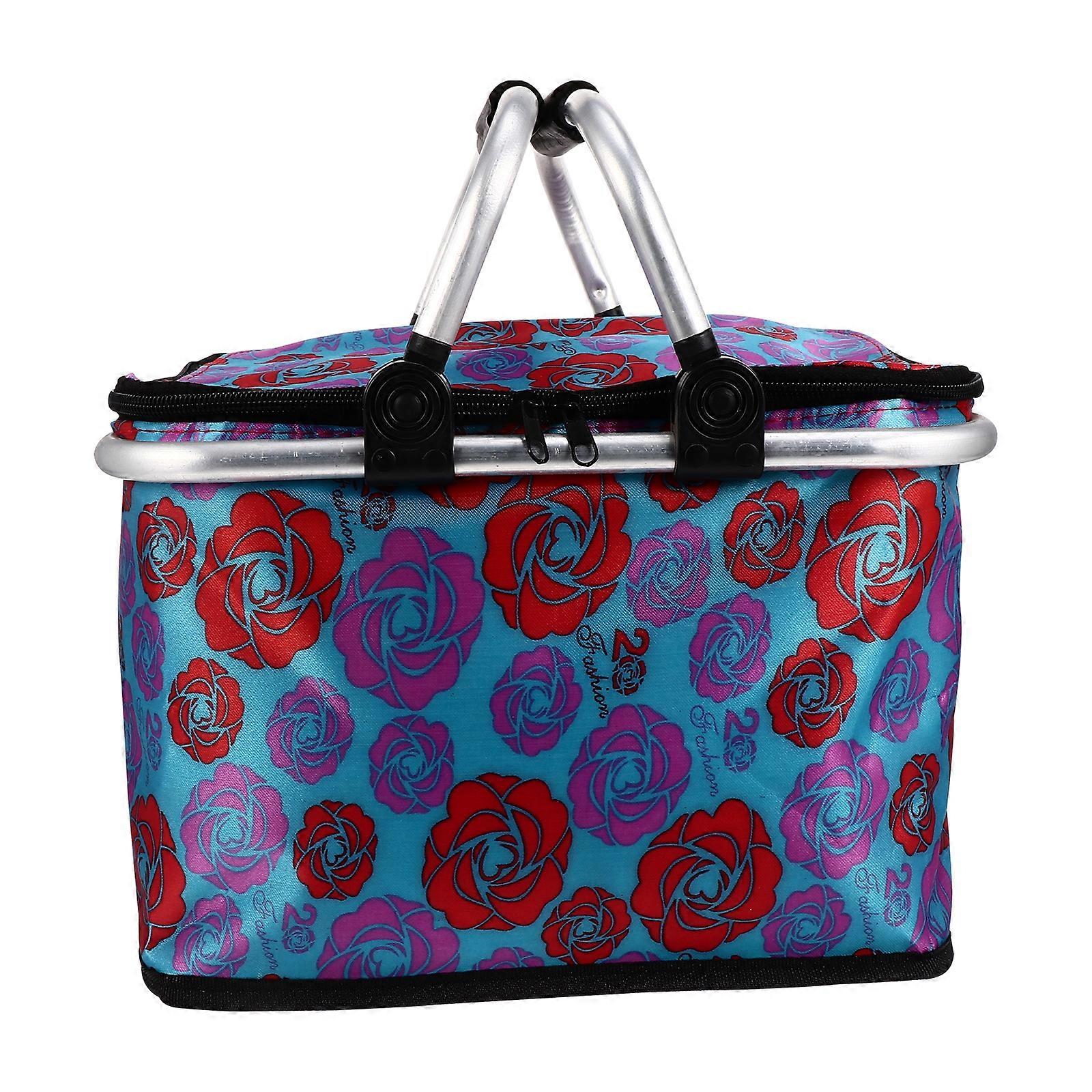 1pc Small Lunch Basket Collapsible Insulated Picnic Bag Folding Basket