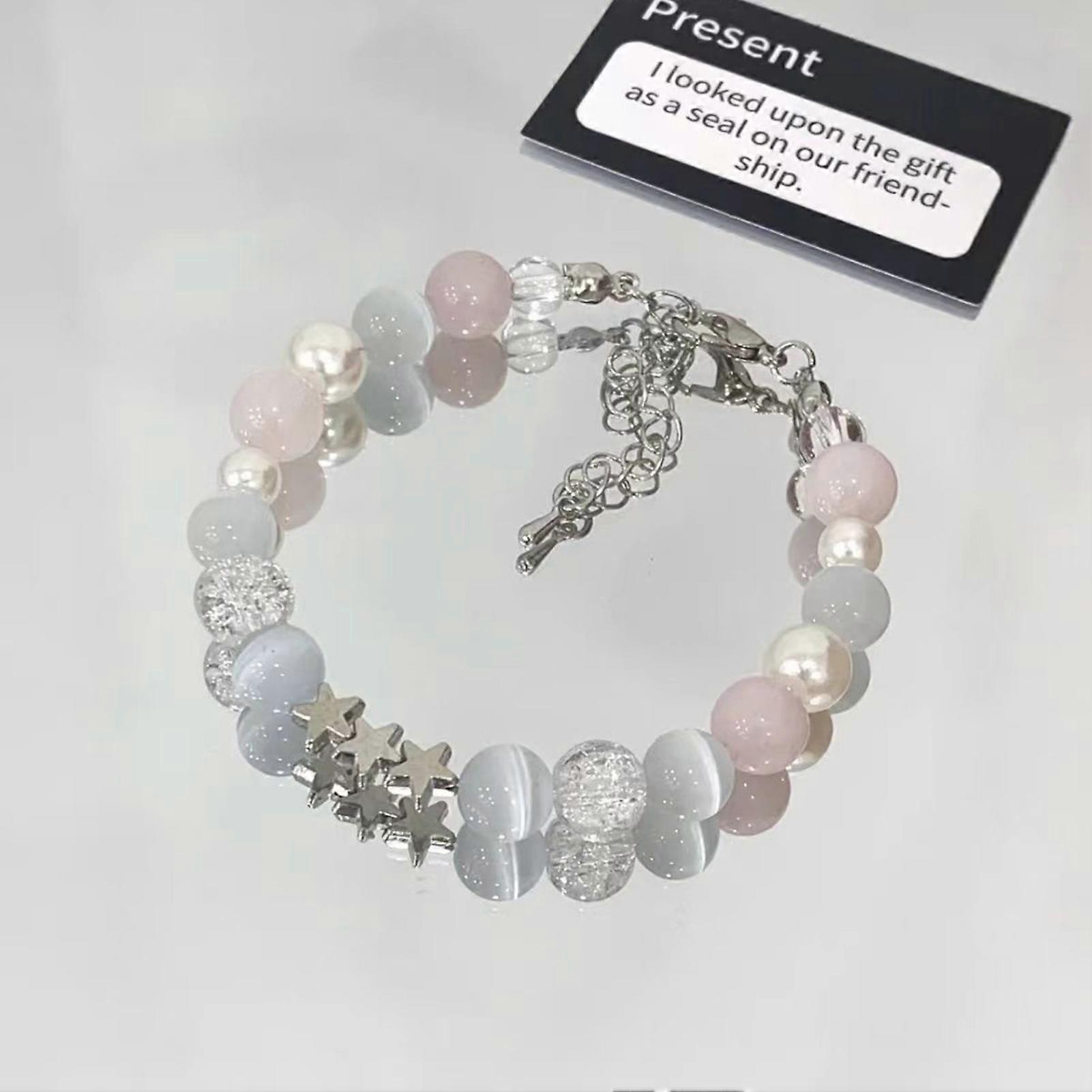 Features : All Match Star Beaded Design: This stunning bracelet features a unique star beaded design, making it a versatile accessory that complements any outfit for shopping, dating, or parties. Elegant and Luxurious: Crafted with sparkling glass beads, this light and luxurious bracelet adds an elegant touch to your hand jewelry collection, perfect for everyday wear or special occasions. Durable and Trendy: Made with high-quality materials, our clear beaded stretch bracelet is designed to resist discoloration, ensuring that your trendy chain jewelry remains beautiful over time. Thoughtful Gift Choice: Ideal for anniversaries, birthdays, or engagements, this bracelet makes a perfect gift for girlfriends, husbands, or wives, showing your love and appreciation in a stylish way. Easy to Match: The easy-to-match design of this bracelet allows you to effortlessly pair it with any outfit, making it a must-have accessory for every fashion-forward individual. Specification : Material: Glass Gender: Women Notes: Due to manual measurement,please allow 0-2cm measuring deviation.Thank you for understanding! Include: 1 * Bracelet