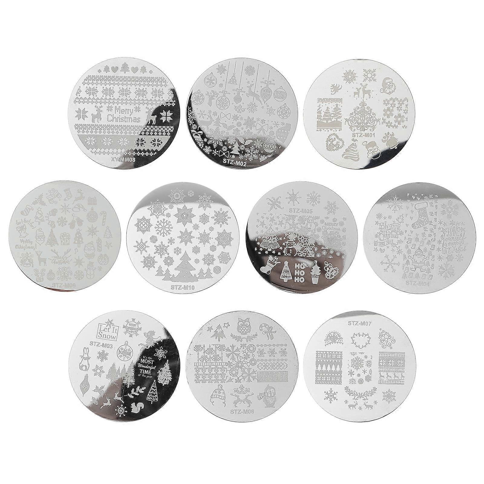 10 Sheets Nail Stamp Stamping Plates Holiday Manicure Template New Year Manicure Stencils Nail Molds