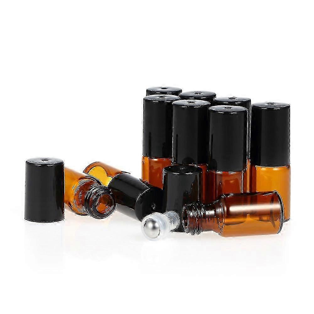 10 Pcs 10ml Amber Glass Essential Oils Roller Bottle Roll-on Bottles Stainless Steel Roller Ball Essential Oil Jar With 3ml Dropper