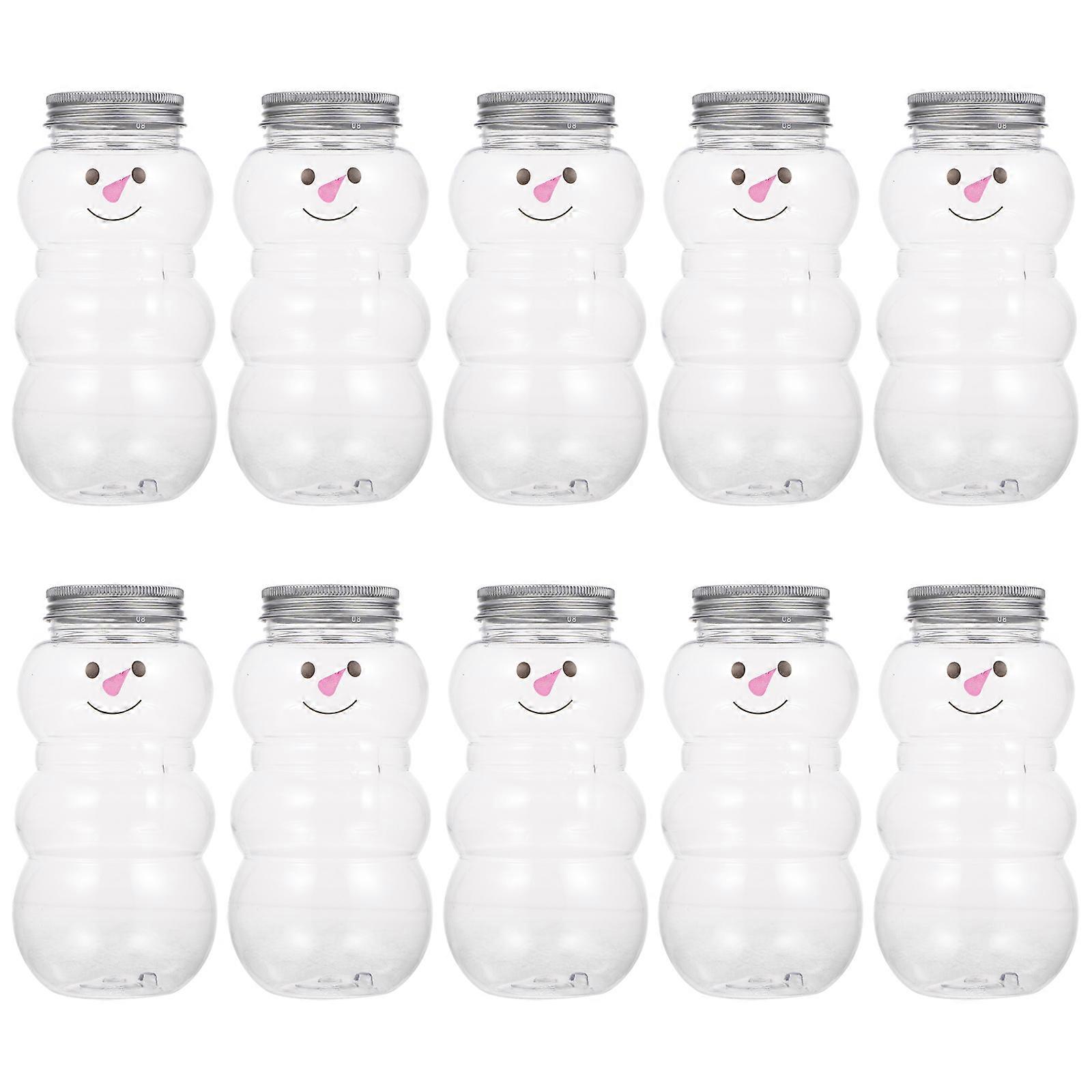 10Pcs Juice Bottles Christmas Snowman Beverage Bottles Airtight Packing Bottles Milk Tea Bottles