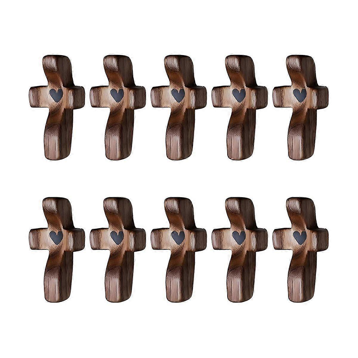 10pcs Wooden Fidget, Encouragement Gift, Handcrafted Pocket Wood Crosses, Relieve Anxiety