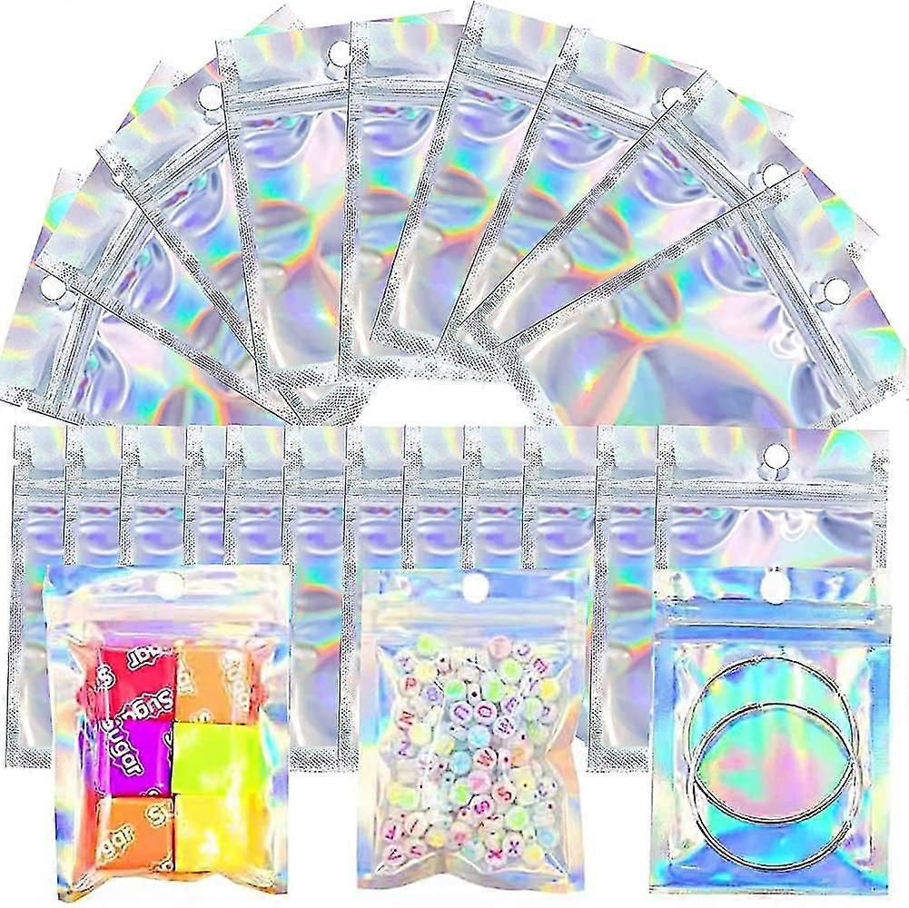 100 Pcs Holographic Packaging Bags Small Goodie Bags Mylar Bags Zip Lock Smell