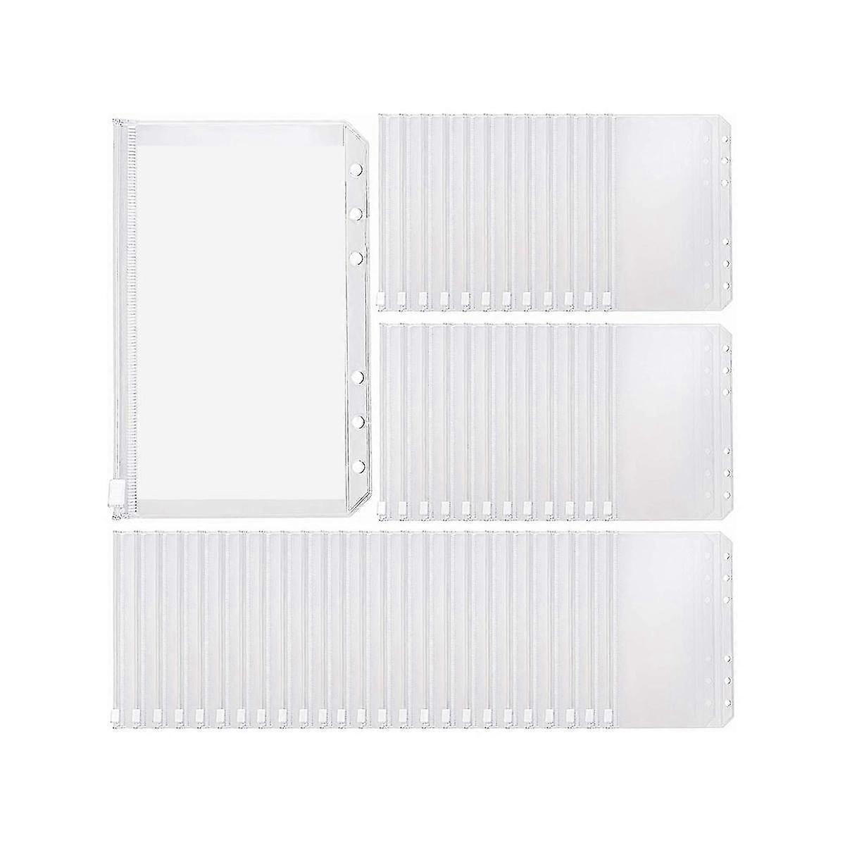 100pcs Transparent A6 Binder Pockets 6 Holes Zipper Folders Pvc Card Loose Leaf Bags Cash Envelopes For Budgeting Binder