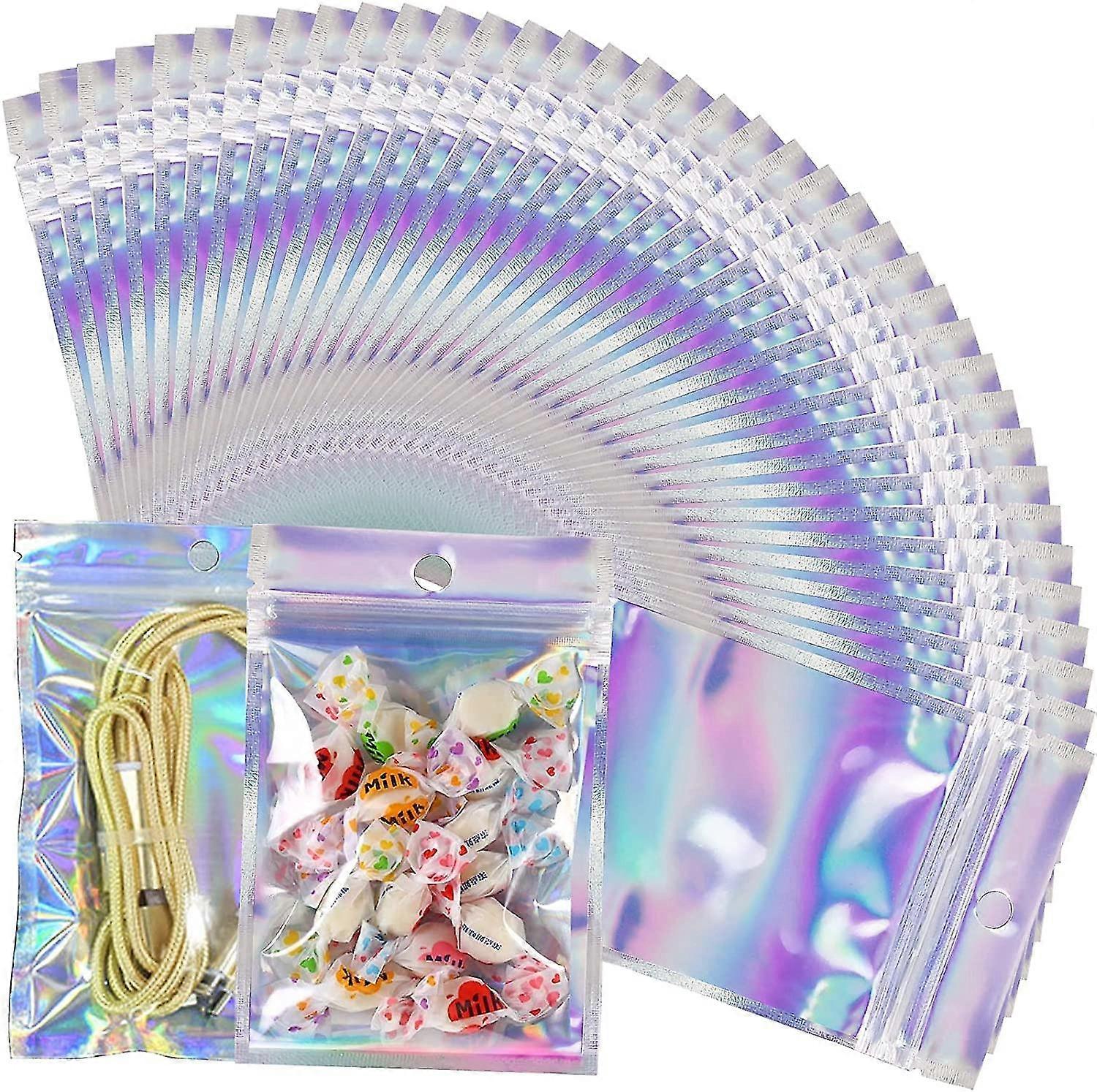 100pcs Resealable Smell Proof Bags Resealable Bags Holographic Pouch Zip Lock