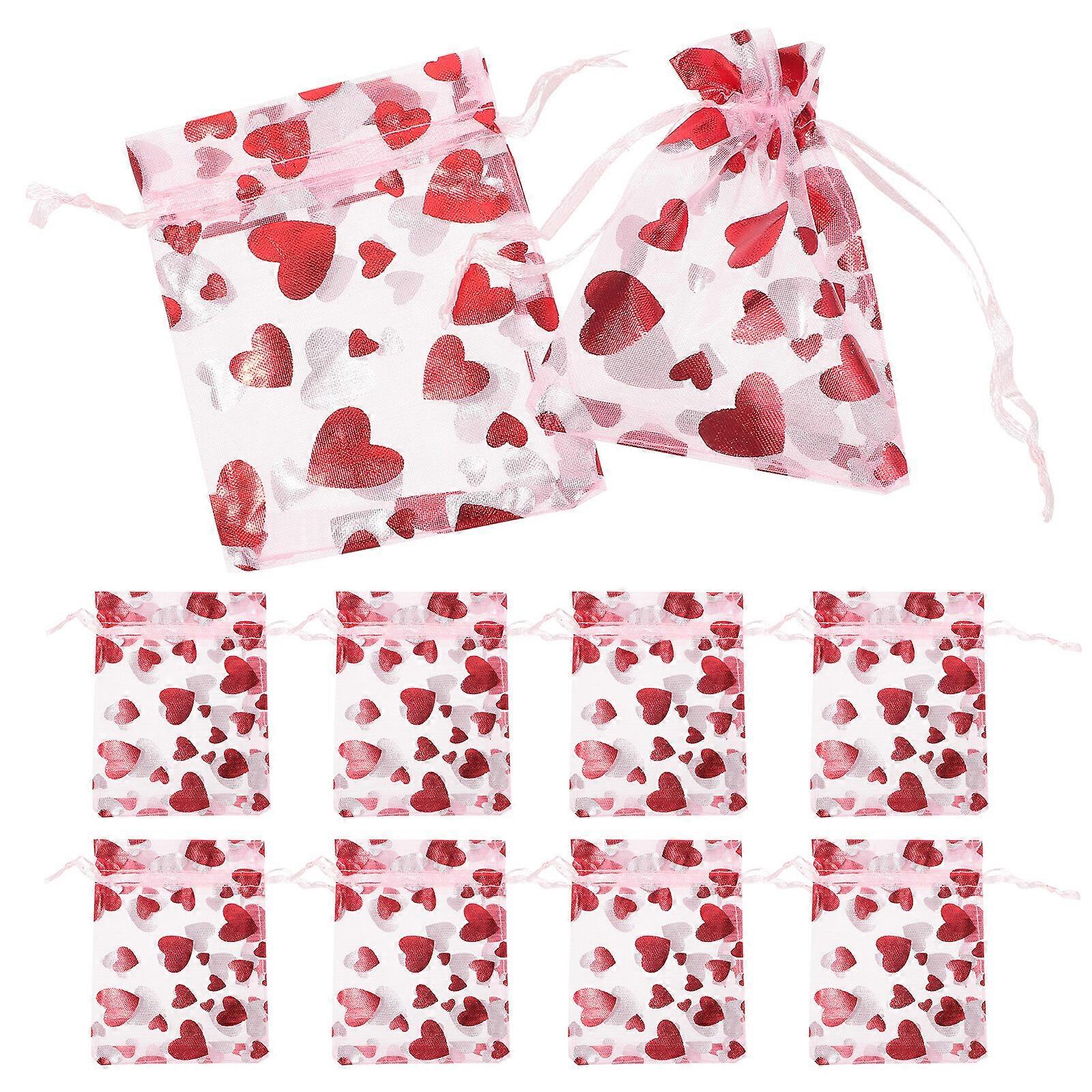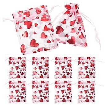 100pcs Heart Organza Bags Candy Bags Jewelry Bags Drawstring Small Gift Bags Heart Favor Bags