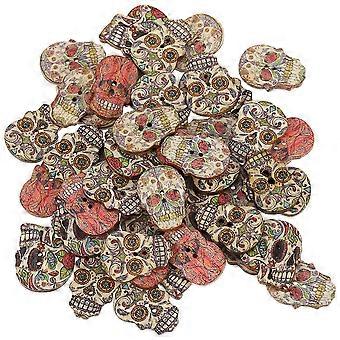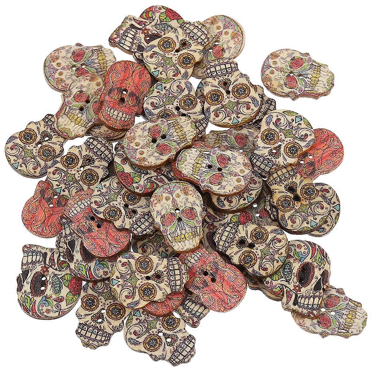 100pcs Wood 2 Holes Skull Button Handmade DIY Painted Buttons Clothing Accessory