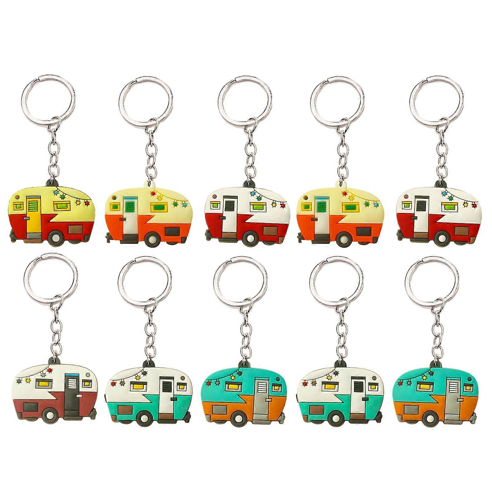 10Pcs Motorhome Shape Keychain Campervan Charm Keyring Pendant Miniature Campers Key Rings Jewelry for Bags and Keys