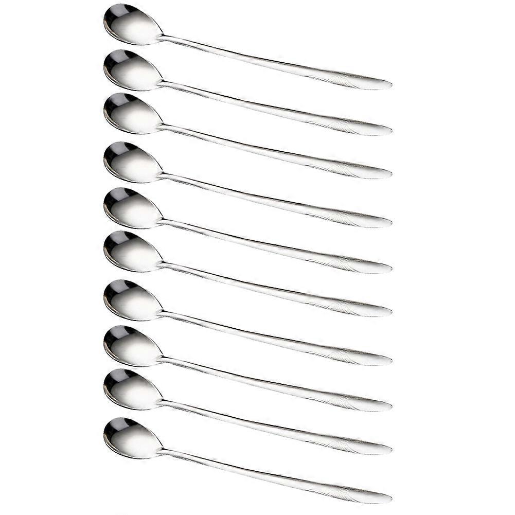 10Pcs Long Handle Stainless Steel Coffee Ice Cream Dessert Tea Spoon Tableware