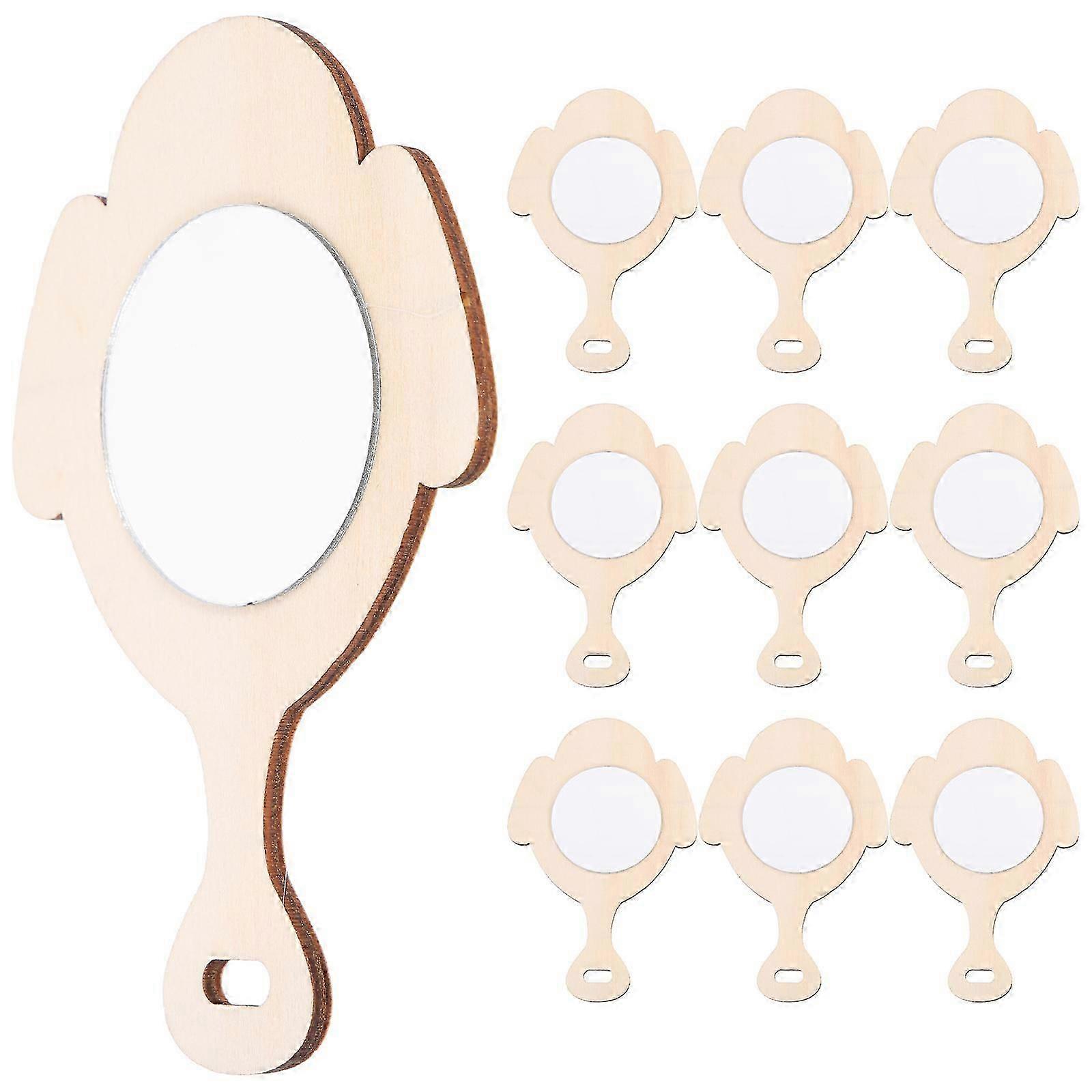 10pcs Wooden Mirror Toys Unfinished DIY Mirrors Handcrafted Hand Mirrors Craft Supply