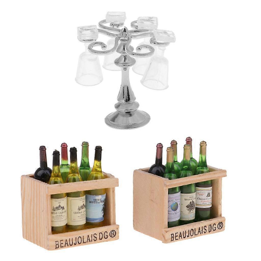 1/12 Dollhouse Beer With Storage Box Toys & Cup Rack Goblets Set