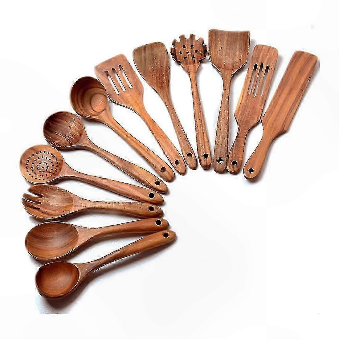 12-Piece Wooden Cooking Utensil Set for Kitchen Use Spoons and Spatulas Included