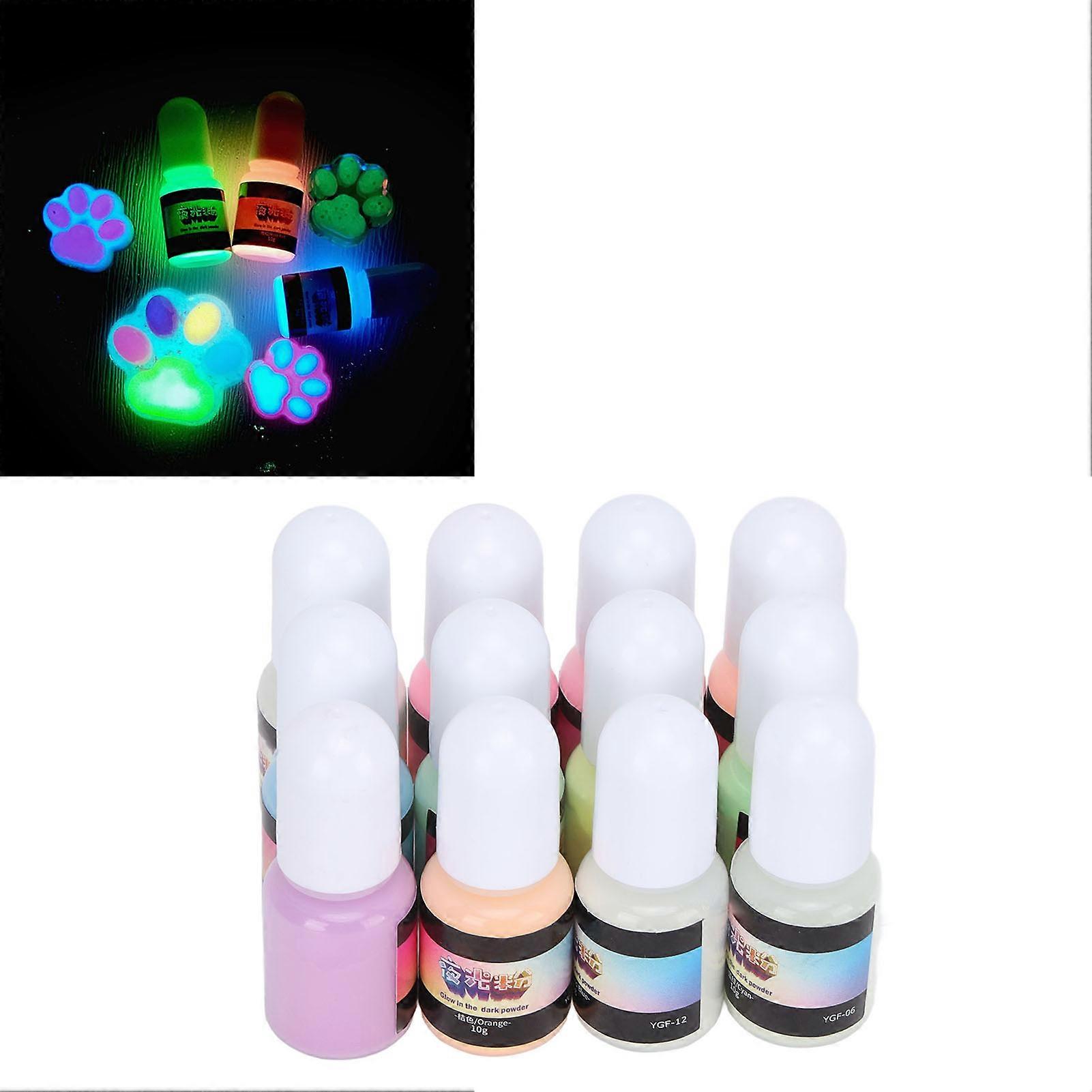 12 Pcs Glow Powder 12 Colors Resin Pigment 10g Bottles DIY