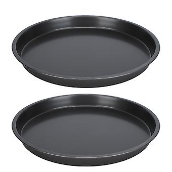 12in Non Stick Pizza Pan 2Pcs Set Deep Thickened Carbon Steel Bakeware for Kitchen Bakery Durable Even Heat Distribution