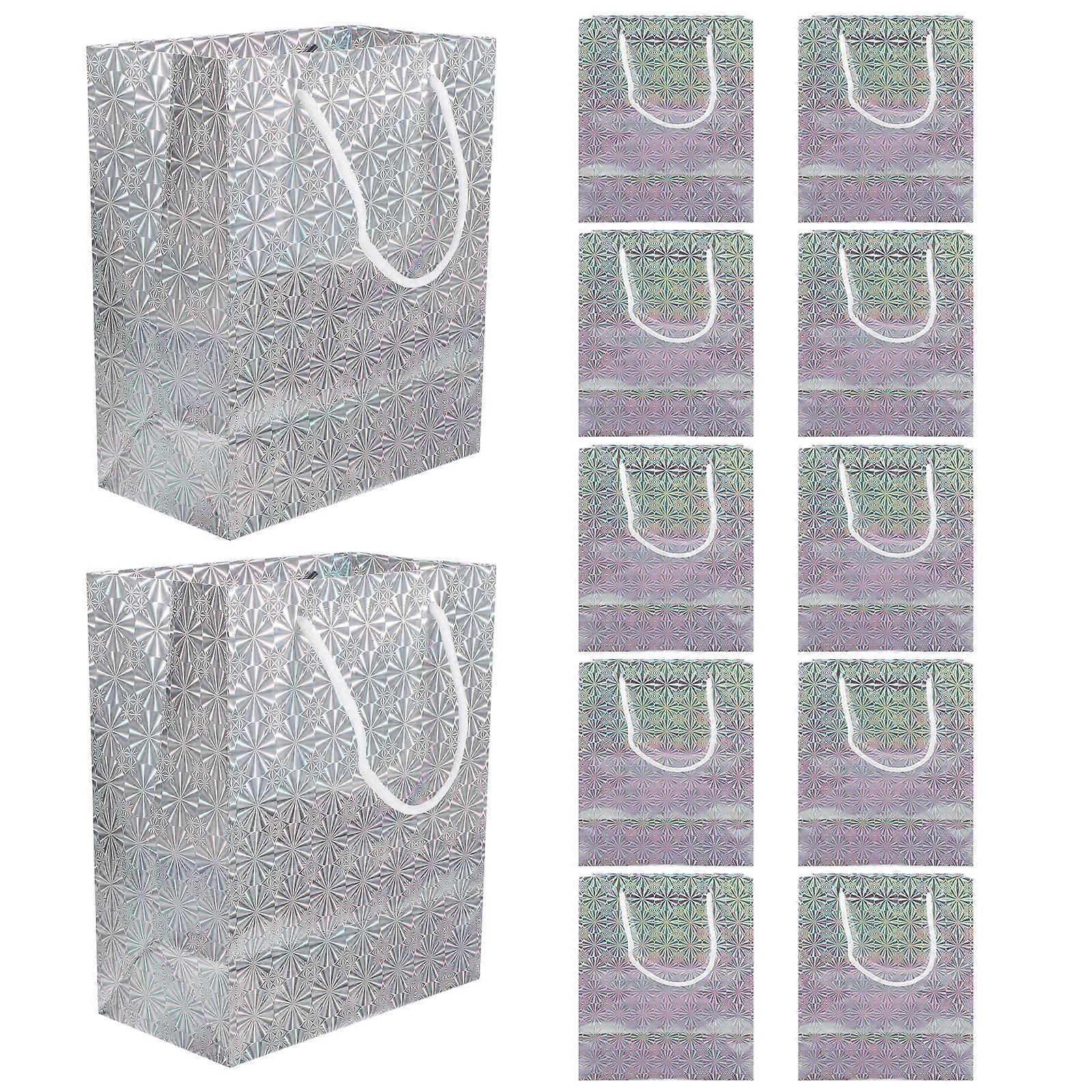 12pcs Gift Bags Shiny Bags Gift Bags with Handles Wedding Party Gift Bags Party Supplies Silver