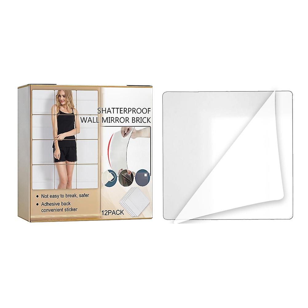 12Pcs Self Adhesive Mirror Tiles Acrylic Thick Shatterproof Mirror Stickers Mirror Sheets for Home Bedroom Living Room Bathroom Wall Decor