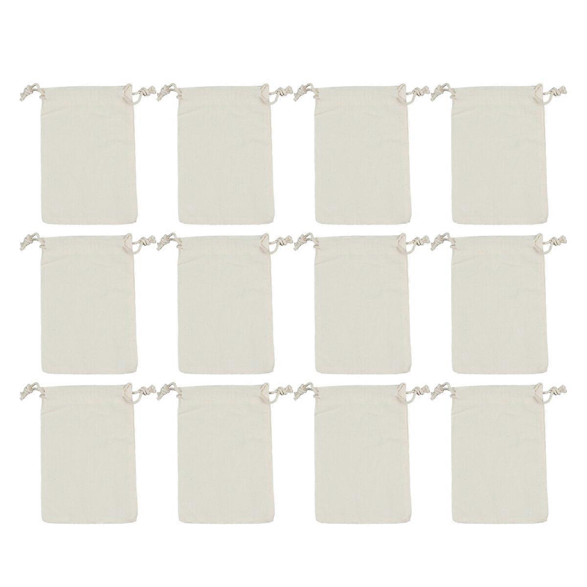 12pcs Drawstring Gift Bags Wedding Favor Bags Cotton Storage Holder Silk Screen Bundle Mouth Jewelry Pouches (Beige)