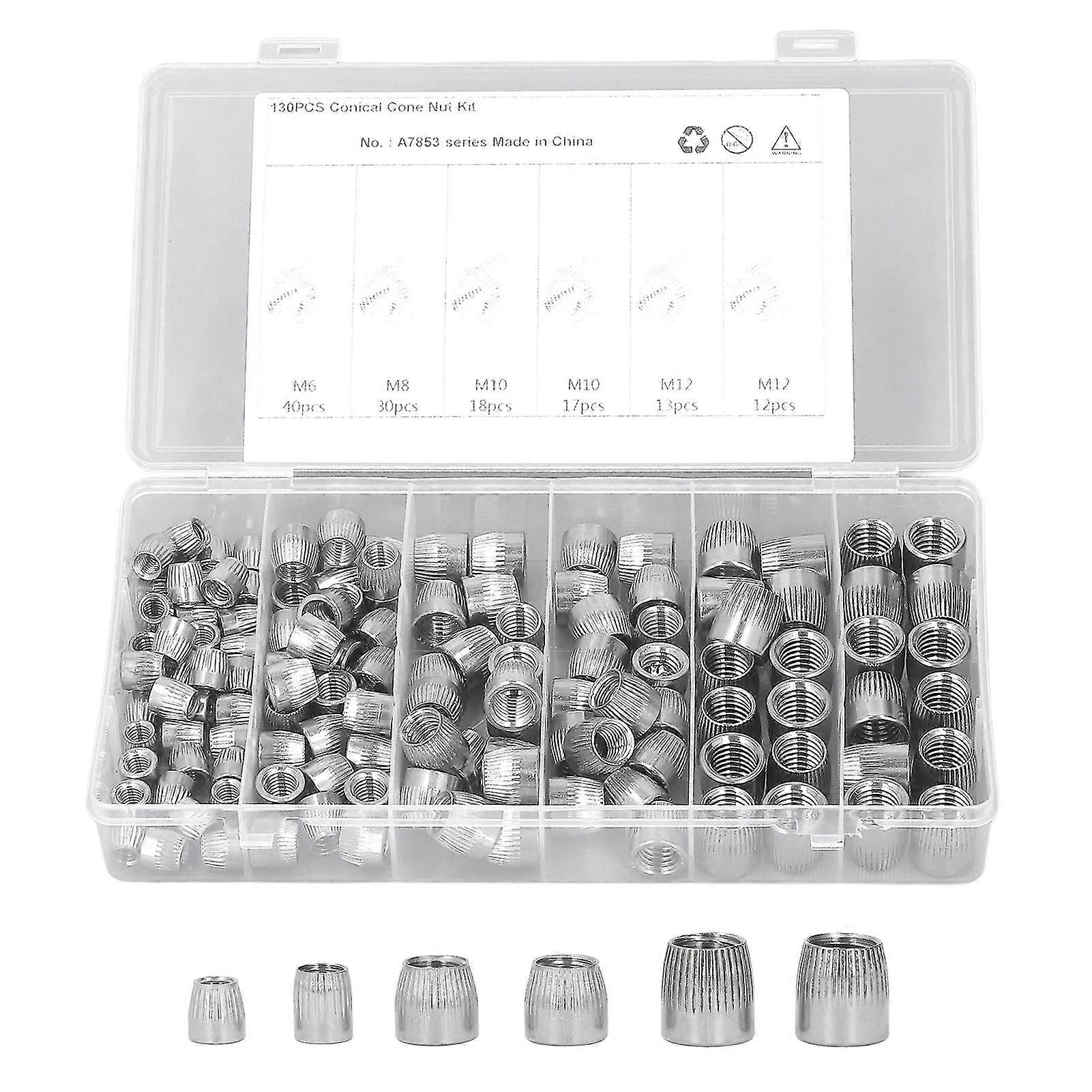 130Pcs Threaded Insert 4 Types Stainless Steel Knurled Nut Assortment for Car Machine 26s