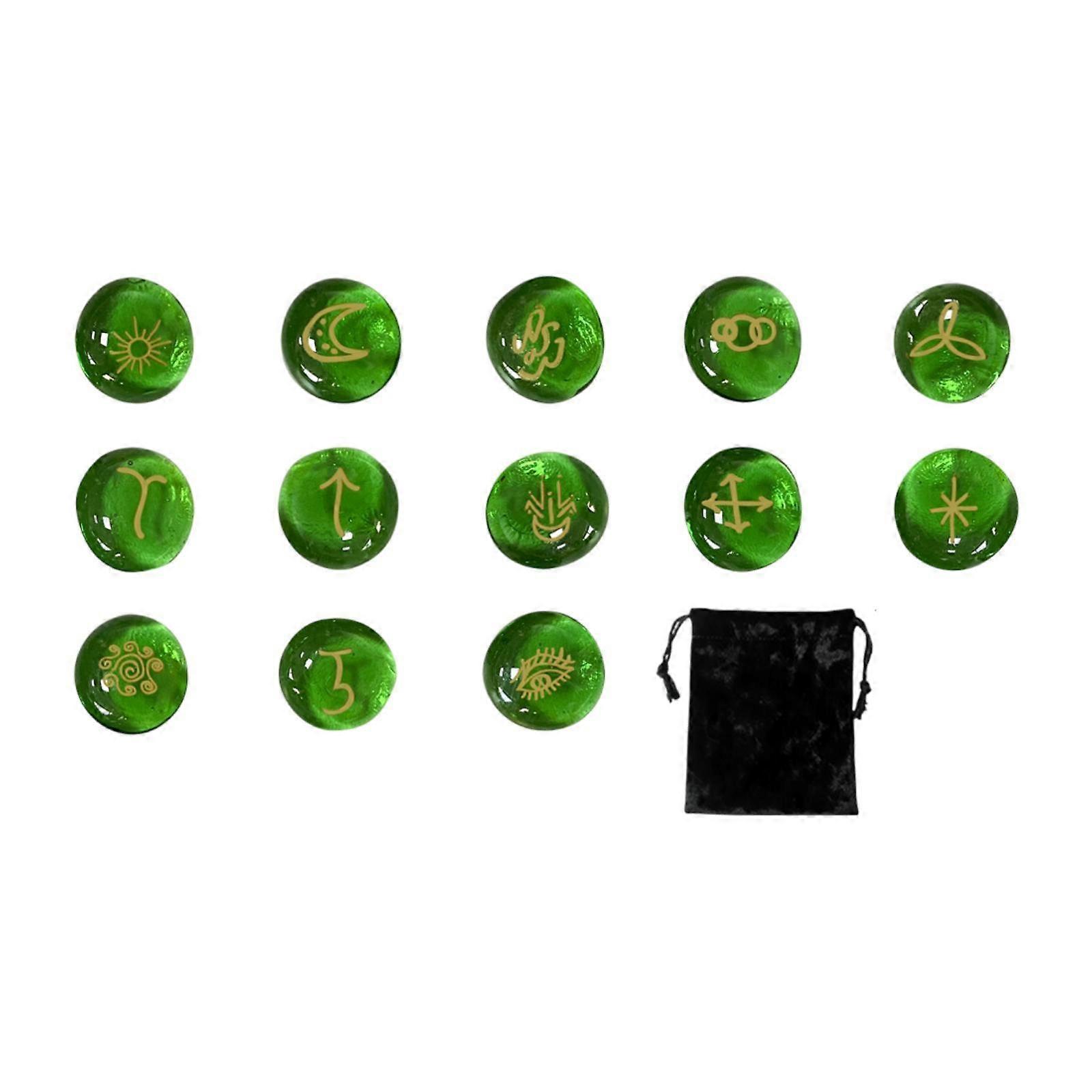 13Pcs Runes Stones Set Glass Runes Drawstring Bag Witch Gift Elder Rune Set