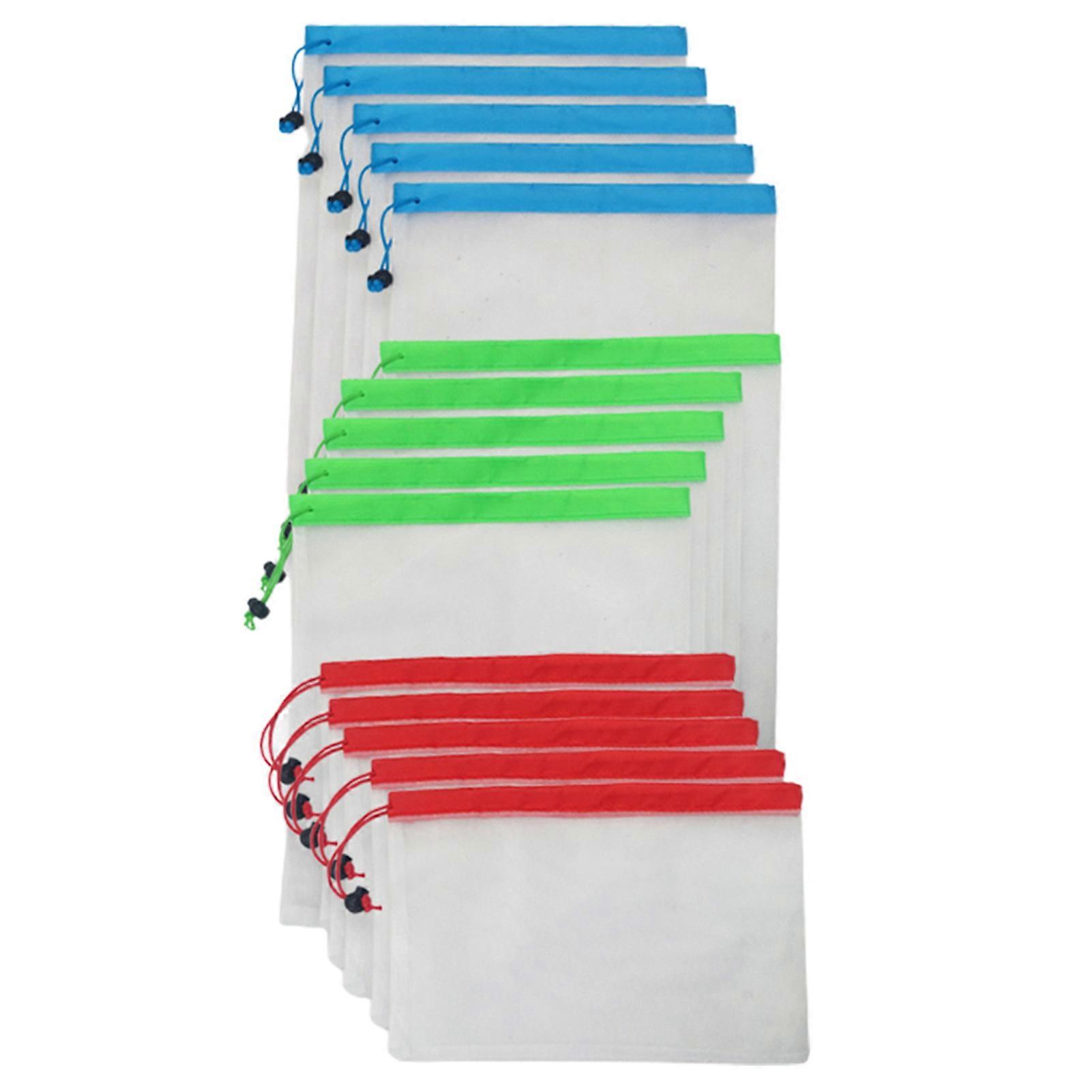 15Pcs Washable Mesh Produce Bag Eco Friendly Polyester Preserve Freshness Mesh Vegetable Bag for Storing