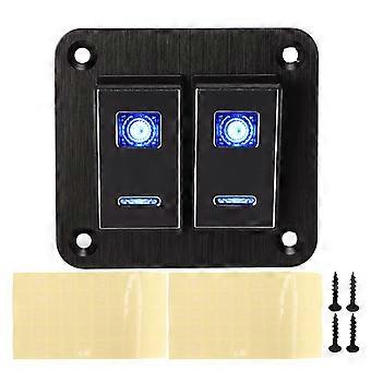 2 Blok Rocker Switch Panel Vandtæt ON OFF Blå baggrundsbelyst aluminiumslegering Anodize Sort Børstet Til Bil Båd Lastbil RV YEMAA