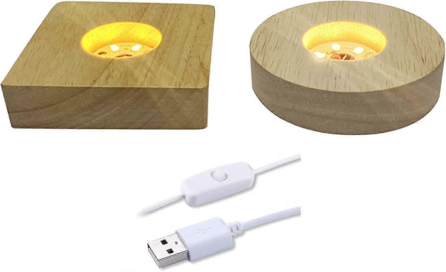 NOTE: it's USB powered and the switch is on/off switch. can't control the color change High Quality MATERIAL:Made of environmentally friendly materials, wood base looks more elegant, durable to use and works great. Can be used for spherical objects, rectangular objects, design curved shapes for spherical objects, preventing spherical objects from moving Light color: Multi colors, with 6 Highlight led lights,power : 1W,voltage: 5V USB. NOTE: it's USB powered and the switch is on/off switch. can't control the color change What you will get : 1PCS Round LED display base(multicolor), 1 PCS Square light display base(multicolor), Both with a USB plug. WIDELY USE- LED Lamp Stand Base brings Magical Splendor and Charm to the 2D or 3D Crystal Crafts, can be used for Crystal, Art Glass, Acrylic, 3D Crystal Statues,Jewelry and Other Items During Christmas Day Party Product Feature: -Material: Wood. -Run off of USB and with switch, allows You to control very conveniently. -Round LED Light Base: Light color: multicolor Power : 1W, Voltage: 5V USB. Size: diameter:3.94in/10cm, height: 0.9in/2.3cm -Square Lighted Display Stand: Light color: multicolor Power : 3W, Voltage: 5V USB. Size: 2.75*2.75*0.71in/7*7*1.8cm Package Included: 2PCS LED Display Base