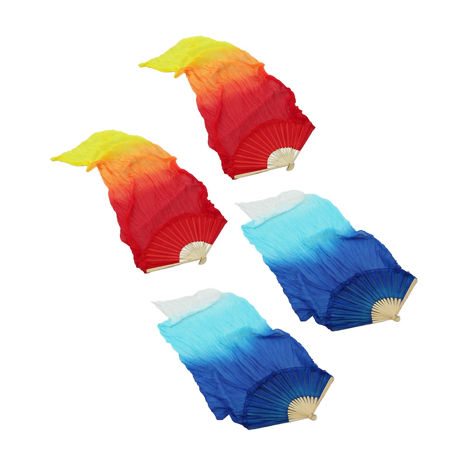 2Pairs Belly Dancing Silk Fans Veils Long Folding Fan