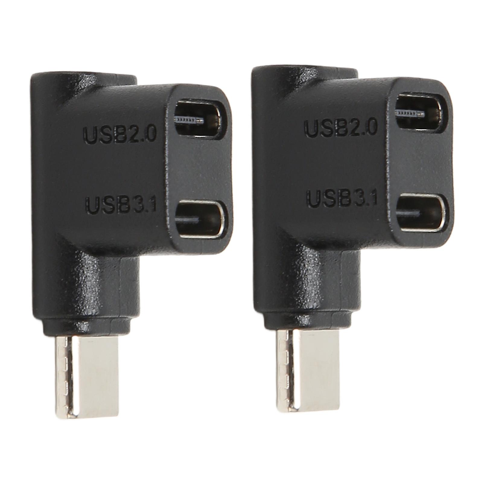 2pcs 1 to 2 USB C 3.1 90 Degree Angle Adapter 10Gbps USB 3.1 Type C Male to USBC 3.1 USB C2.0 Dual Female Right Angle Connector