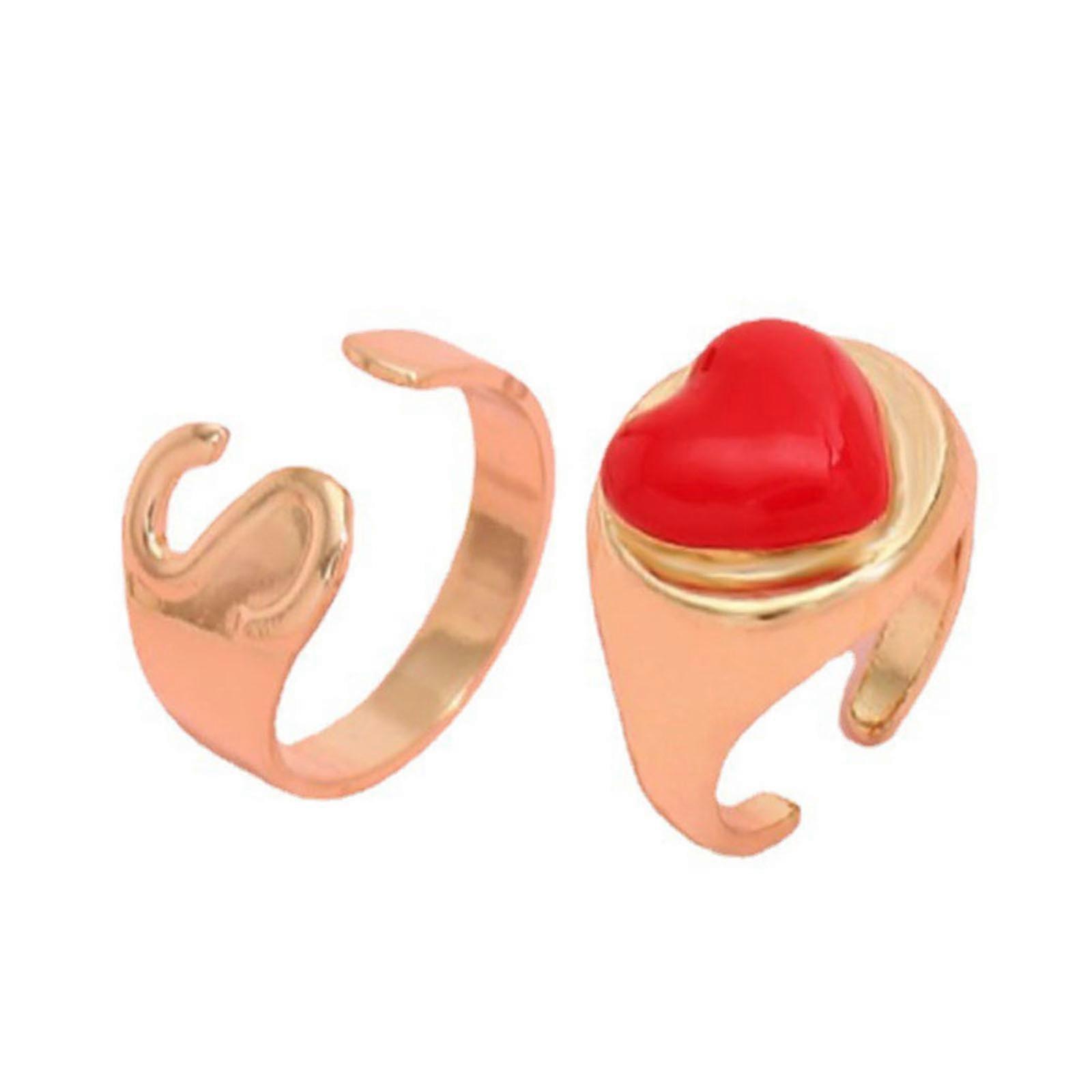 2 Pcs Letter Love Heart Rings for Women Girls Alloy Alphabet Name Open Adjustable Finger Ring Jewelry