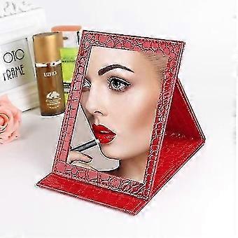2 Pcs Square Stand Leather Make Up Mirror Alligator Pattern Portable Cosmetic Mirror