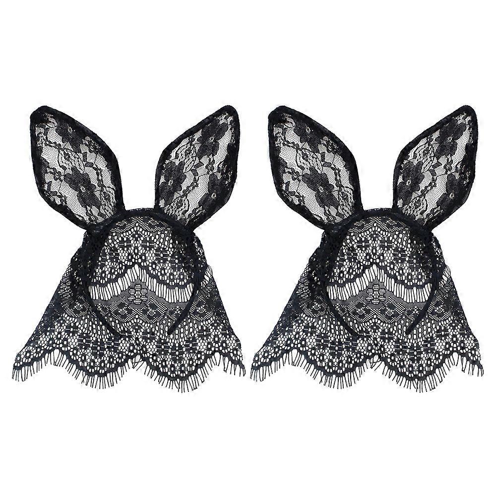 2 Pcs Bunny Ears Headband Easter Bunny Headband Black Veils Headband Veil Hair Hoops