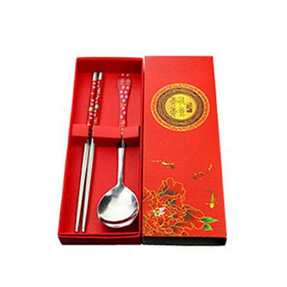 2Pcs Stainless Steel Blue and White Porcelain Chopsticks Spoon Tableware Set