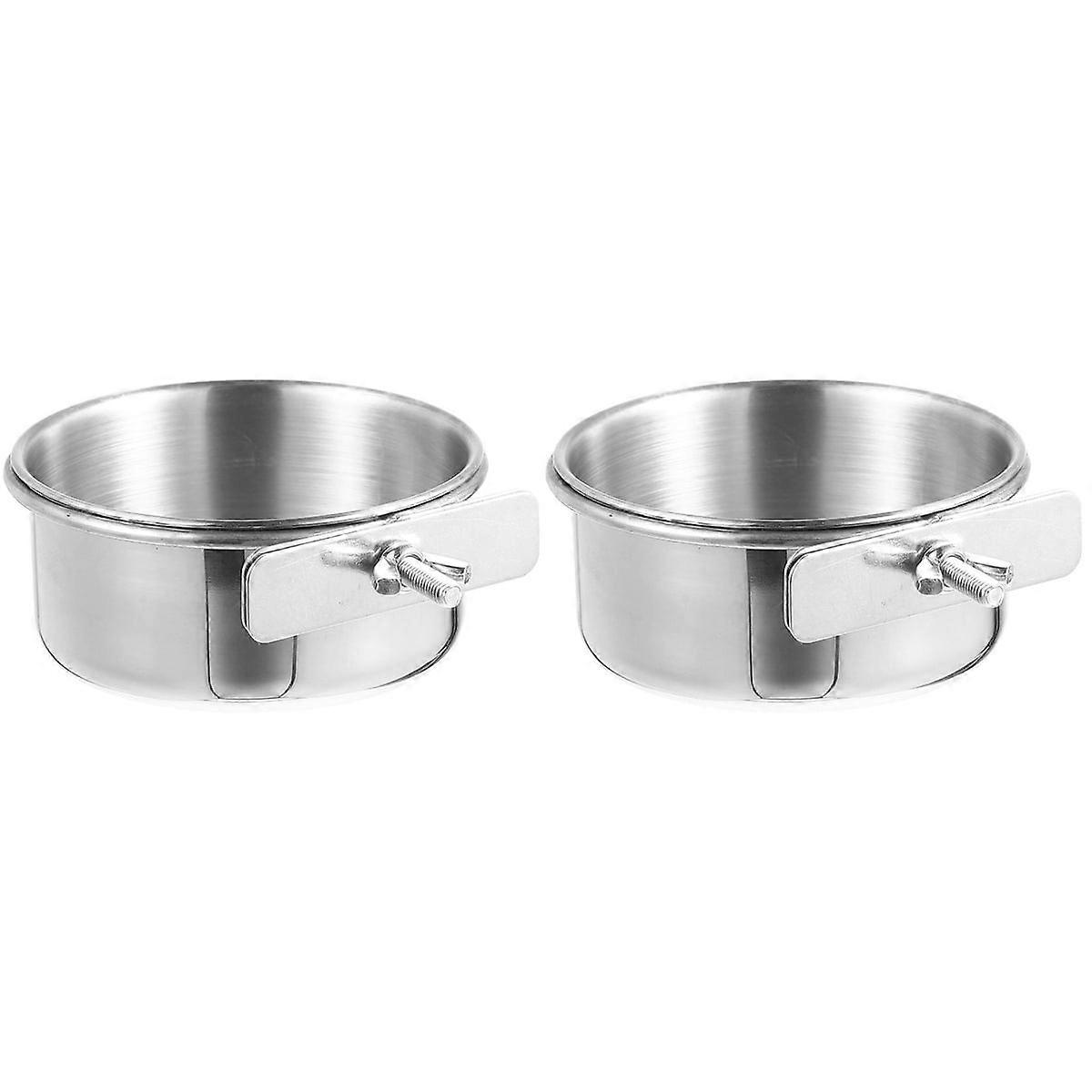2pcs Stainless Steel Bird Feeder Parrot Feeder Dish Cup Bird Cage Feeding Cup Parrot Food Holder