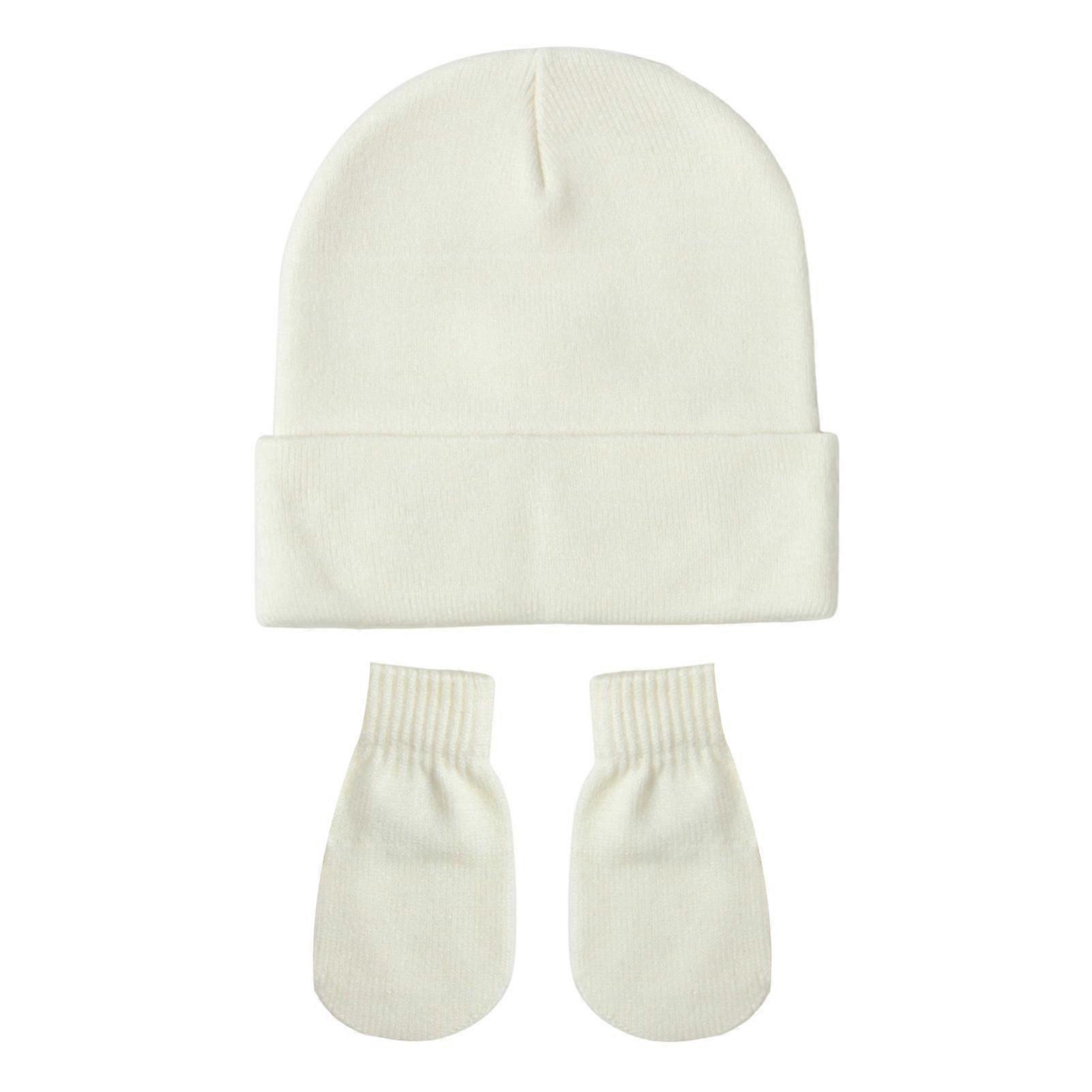 2 Pcs/Set Children Hat And Gloves Set Knitted Pure Color Elastic Beanie Keep Warm Anti-slip Mittens Unisex Toddler Bonnet