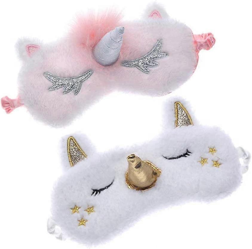 2 Pieces Cute Plush Unicorn Blindfold, Unicorn Horn Soft Blindfold, Eye Cover 3D Cartoon