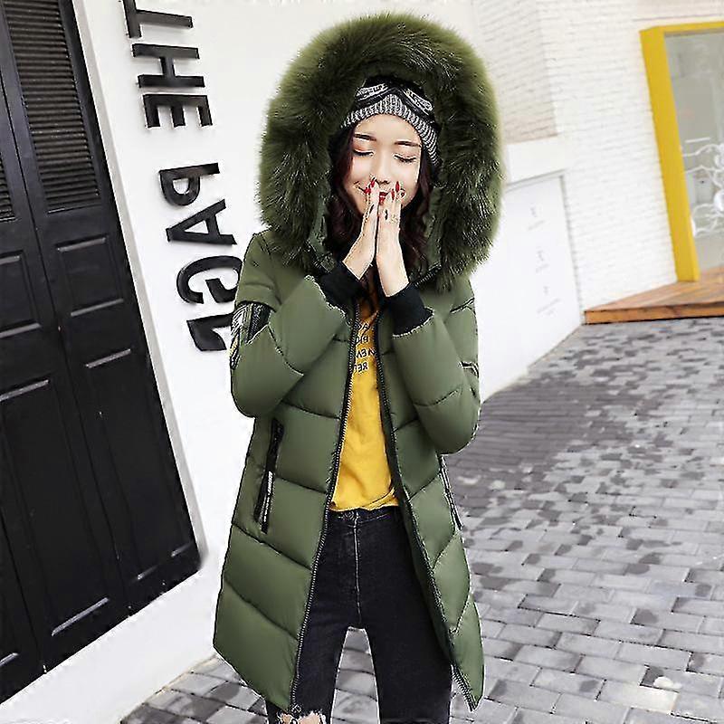 2022 Winter women's cotton-padded jacket mid-length large fur collar plus fleece down padded jacket padded coat