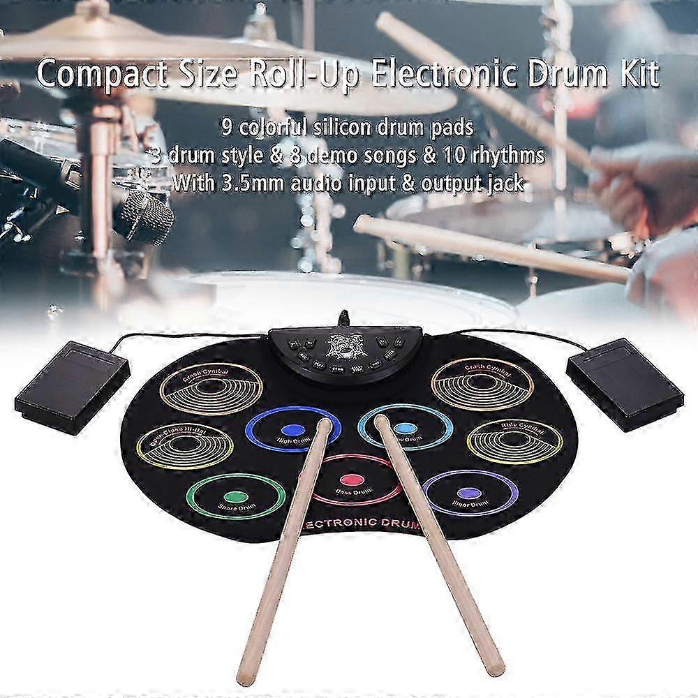 2025 Portable Size Electronic Drum Kit 9 Silicon Drum Pads Foldable Drum Set Usb/ Ed With Drum Foot Pedals