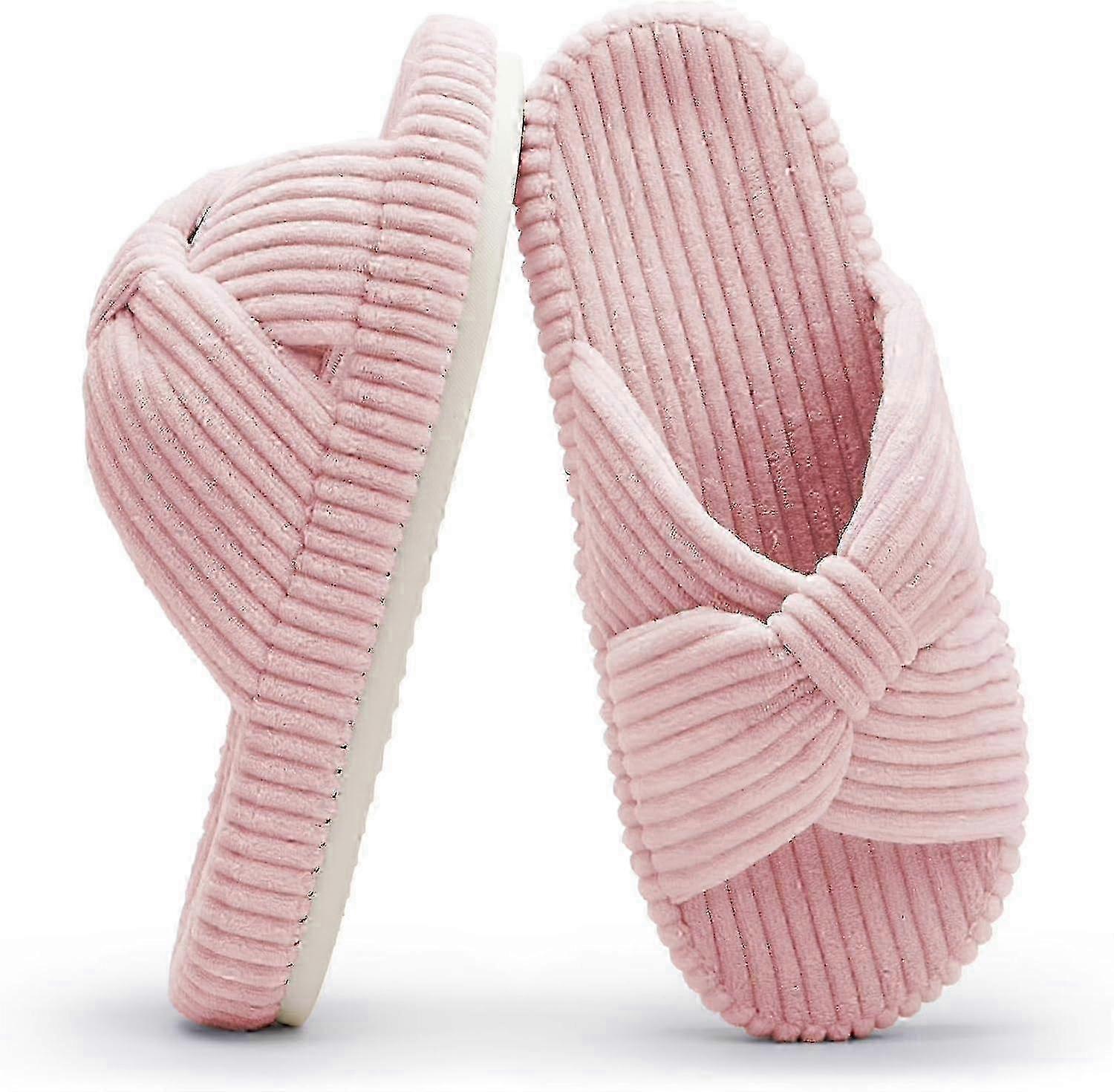 Suitable for all seasonsOpen-toe breathable design keeps your feet dry for all seasons. The stripes and plaids of the corduroy fabric keep feet and shoes from slipping. They are lightweigt and comfortable slippers. Memory Foam SlipperHigh-density memory foam relaxes your feet and accompanies you to spend leisure time after work. They can be a little tight at first due to the thicker memory foam, but after a while they will fit your foot perfectly.Perfect Practical SlippersThe elegant and classic design of cross straps and bows can be matched with any outfit and can be used in various scenes such as hospital, wedding, travel, gathering with friends and so on. Also great as a gift for girls and ladies of all ages. Their clean look makes them easy to care. Machine or hand washed. Air dry. Indoor and Outdoor SlippersThe non-slip waterproof sole allows you to walk in the bathroom with confidence, the sole is so quiet that it won't disturb your family, and you can wear them in the courtyard or for a walk. Note: Due to the light and screen setting difference, the item's color may be slightly different from the pictures. Please allow slight dimension difference due to different manual measurement. Sold by-DIMEANI official store