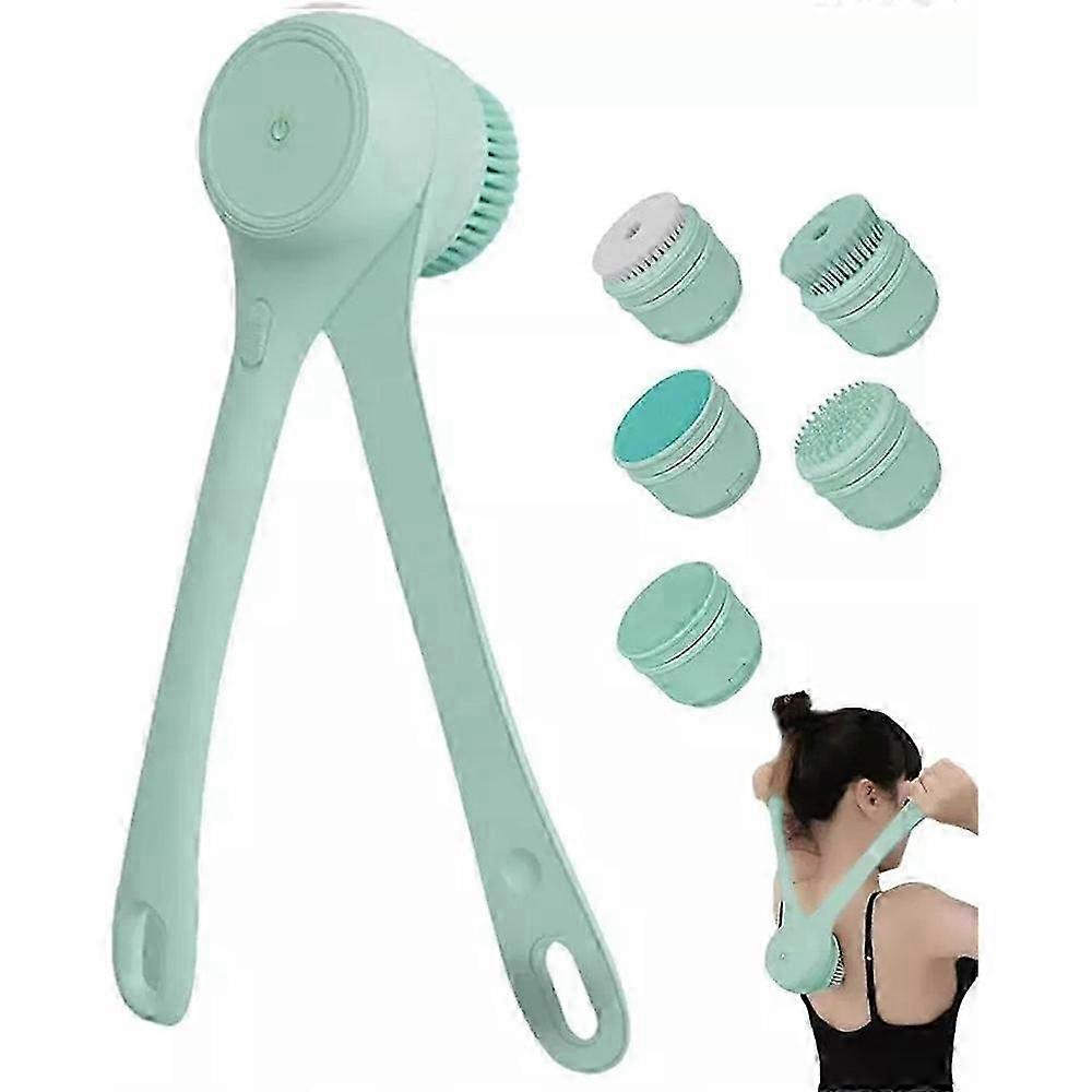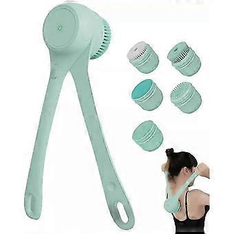 2025 Long Handle Bath Brush with 5 Brush Heads - Powerful Scrubbing, Exfoliating, and Massaging Tool for Bathing, Face Cleansing
