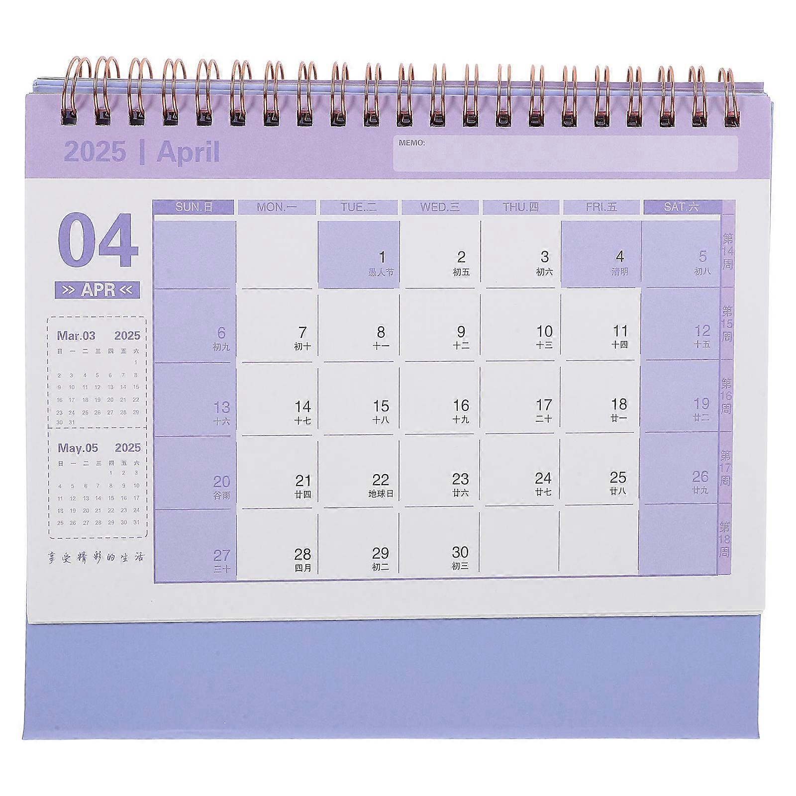 fDescription Features - Color: Purple -Material:Paper - Size: 25.00X21.00X8.00cm/9.82X8.25X3.14in -Fourth english description: compact and versatile, the 2025 desk calendar simple fresh style memo book is perfect for teachers, students, office workers, and anyone looking to record their life and work. Package list: 2 x Calendar