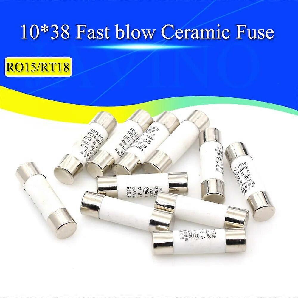 20Pcs 10*38 Fast blow Ceramic Fuse 10x38mm Fuse 380V 500V 0.5A 1A 2A 3A 4A 5A 6A 8A 10A 16A 20A 25A 32A 40A RO15 RT18 RT14